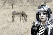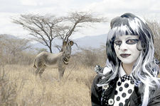 From Tony Forster's discourse and in the tradition of Pig Dyke Molly "proud to be weird, proud to amuse, proud to confuse, proud to entertain" I was confused to think there may be a weird connection to zebras considering the costume style, makeup and your zebra head so I entertained myself by producing a confusingly weird and, I hope, amusing combination of images true to the Pig Dyke Molly tradition.