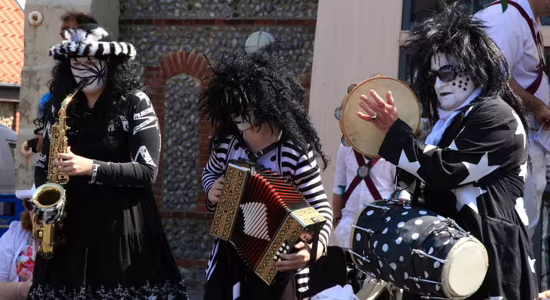 At the start of 2013, Kathryn Johnstone joined us on alto Saxophone. Another talented and young player, her progress from one week to the next was spectacular, and it wasn't long before she was not just playing along with the tunes but adding some of her own "Pig Dyke magic" to the music. By Autumn of the same year, Kathryn had led the music for many of the team's outings, picked up a melodeon which she seemed to know instinctively how to play from day one, and composed a new tune for which the team created a new dance. Not bad for her first 9 months!